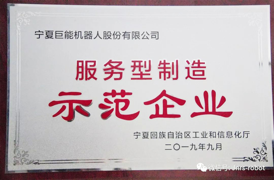 近日,經(jīng)自治區(qū)工信廳評選,寧夏巨能機(jī)器人股份有限公司被確定為服務(wù)型制造示范企業(yè),獲得授牌。