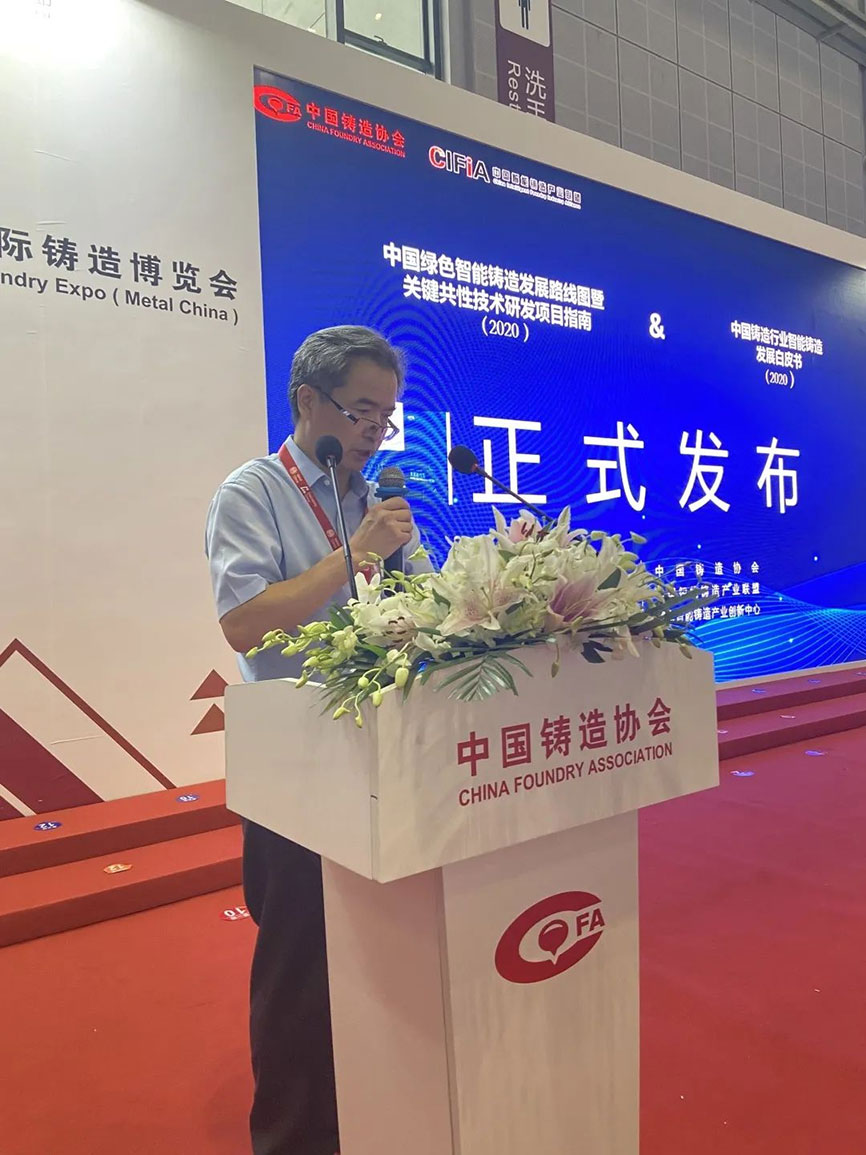 8月19日上午10:45,在3H館3B58,由中國鑄造協(xié)會、中國智能鑄造產(chǎn)業(yè)聯(lián)盟組織編寫的《中國鑄造行業(yè)智能制造發(fā)展白皮書2020》和《中國綠色智能鑄造發(fā)展路線圖暨關(guān)鍵共性技術(shù)研發(fā)項目指南(2020)》發(fā)布儀式啟動。發(fā)布儀式由中國智能鑄造產(chǎn)業(yè)聯(lián)盟秘書長/國家智能鑄造產(chǎn)業(yè)創(chuàng)新中心總經(jīng)理楊軍主持,溫平副會長發(fā)表講話。