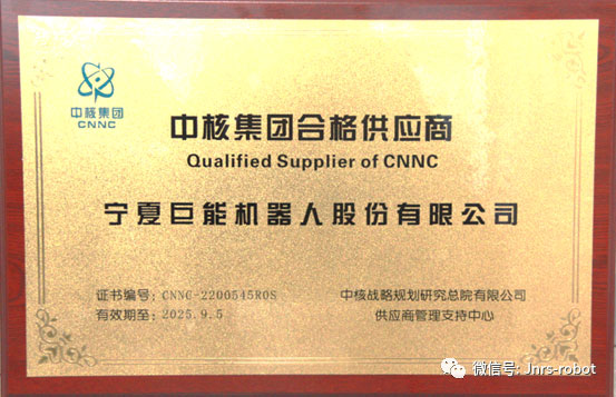 近日,中核集團委托興原認(rèn)證中心有限公司,依據(jù)中核集團合格供應(yīng)商評價的有關(guān)規(guī)定,從基本條件、產(chǎn)品與服務(wù)質(zhì)量、技術(shù)能力、質(zhì)保能力、商務(wù)(財務(wù))能力等方面對巨能機器人公司進行評審。經(jīng)評審,我公司各方面能力滿足中核集團供應(yīng)商要求,具備合格供應(yīng)商資質(zhì),具有向中核集團總部及下屬單位提供評審范圍內(nèi)產(chǎn)品(或服務(wù))的資格。
