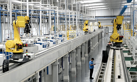 法士特高智新工廠設(shè)計(jì)七大智能場(chǎng)景應(yīng)用,構(gòu)建自動(dòng)化、穩(wěn)定化、柔性化工藝系統(tǒng),實(shí)現(xiàn)了傳統(tǒng)制造向智能制造的轉(zhuǎn)變,生產(chǎn)效率提高70%以上,能源消耗降低14%,人均產(chǎn)值提高5倍多。