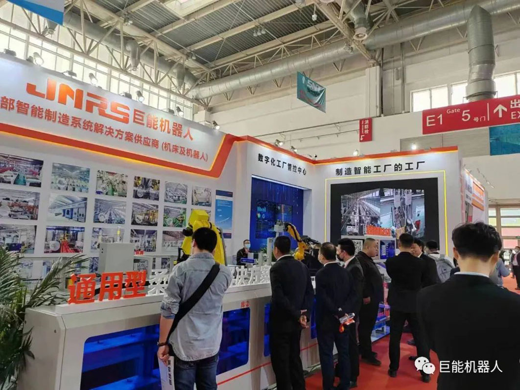 開展首日,位于E館的巨能機器人的展位上人頭攢動,融合通用機床、柔性加工、自動裝卸、智能調(diào)度、自動排產(chǎn)、通用夾具于一體的通用型柔性制造系統(tǒng)解決方案,對于破解多品種少批量生產(chǎn)方式的來賓們給出了“剛?cè)岵钡膱鼍盎鉀Q方案。