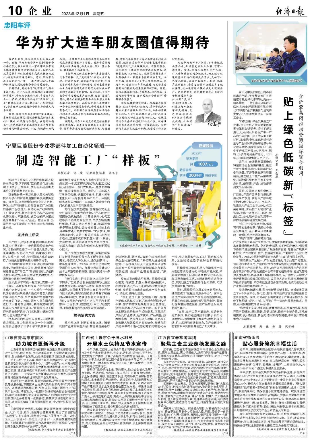 【題記】2023年12月1日,《經(jīng)濟(jì)日?qǐng)?bào)》10版刊發(fā)了對(duì)巨能股份的專題報(bào)道,以下為內(nèi)容全文。