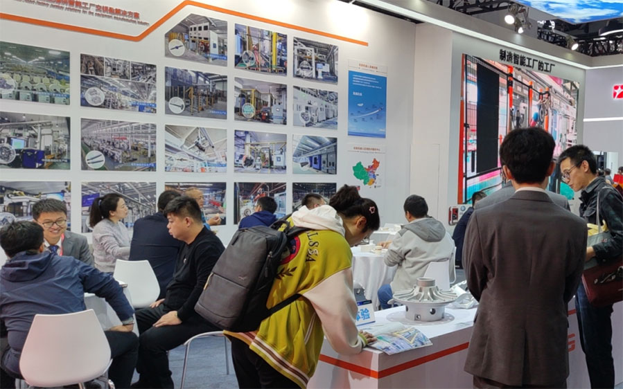 開展首日,位于E館的工業(yè)機(jī)器人及自動化主題館人頭攢動,巨能機(jī)器人展臺前吸引了眾多制造業(yè)同仁的駐足關(guān)注。本屆展會巨能機(jī)器人通過智能工廠、柔性制造、新技術(shù)應(yīng)用、實(shí)戰(zhàn)案例四大板塊內(nèi)容,向金屬加工行業(yè)帶來眾多可落地可實(shí)施的智能制造系統(tǒng)解決實(shí)戰(zhàn)方案。