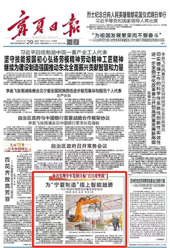 【題記】近日,《寧夏日報》頭版刊發(fā)關于巨能機器人的專題報道,以下為全文轉(zhuǎn)發(fā)。