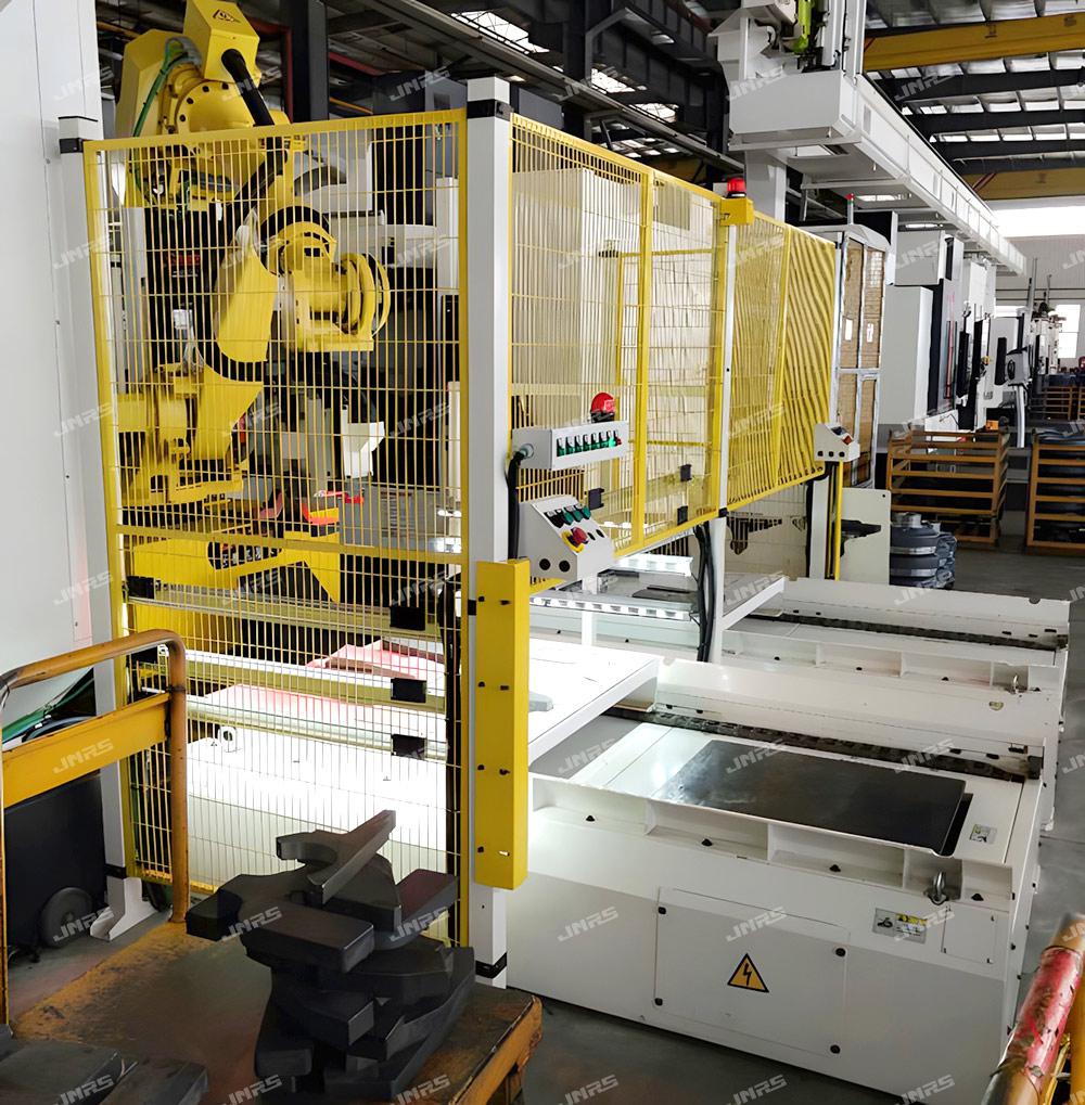 FR系列是基于機器人搬運零點夾具托盤的搬運系統(tǒng),是基于通過柔性制造軟件完成柔性加工的產(chǎn)品。該系統(tǒng)可實現(xiàn)多種零件的兼容,通過零點定位系統(tǒng)更換機床夾具托盤的方式是現(xiàn)實換產(chǎn)。系統(tǒng)包含加工機床,機器人托盤搬用系統(tǒng),線邊庫,上下料站,清洗單元等。