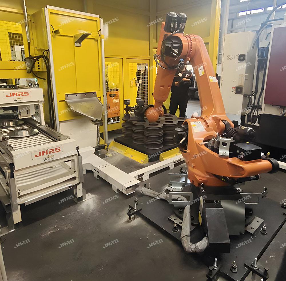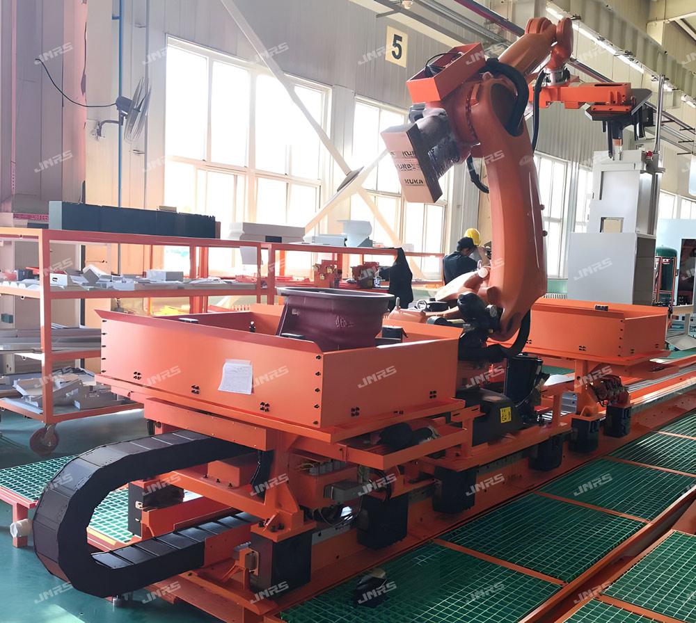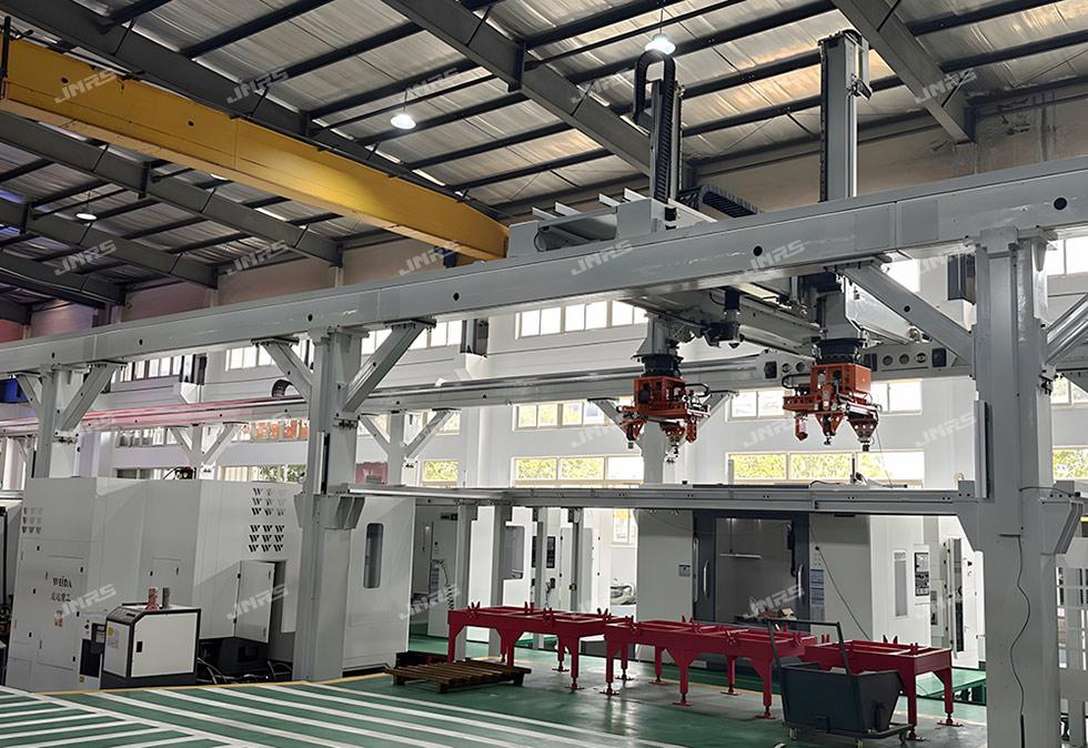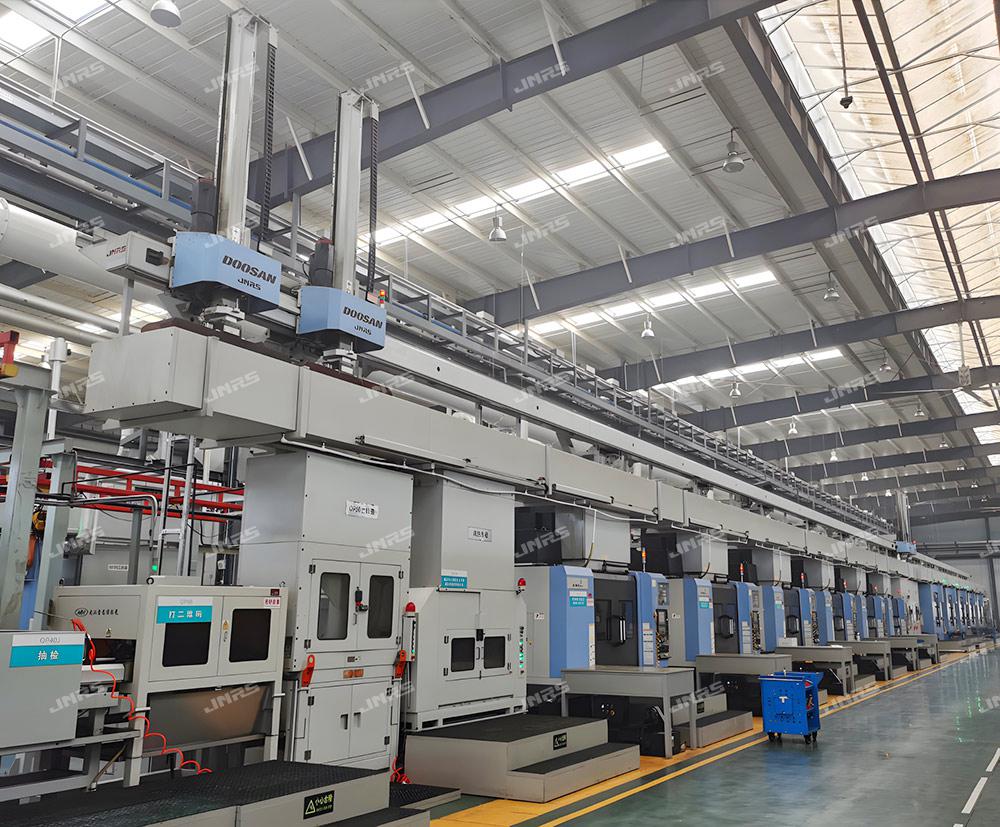 巨能機器人研發(fā)的R-FMS柔性制造系統(tǒng),可實現(xiàn)多種零件在一條自動線中同時混線生產(chǎn),同時可接收來自用戶MES系統(tǒng)發(fā)來的生產(chǎn)訂單,可直接在系統(tǒng)上進行計劃管理,實現(xiàn)多機床、多品種生產(chǎn)計劃的靈活調(diào)度和智能排產(chǎn),還可在手機等智能終端設(shè)備遠程監(jiān)控生產(chǎn)狀態(tài)、下達生產(chǎn)計劃、調(diào)整生產(chǎn)順序,實現(xiàn)智能化、柔性化生產(chǎn)模式。